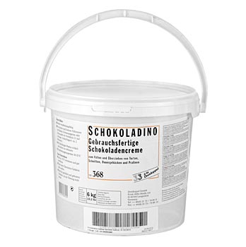 Gebrauchsfertige Schokoladencreme. Zutaten: Zucker, pflanzliches Öl, pflanzliches Fett, 17% Kakao stark entölt, Glukosesirup getrocknet, Emulgatoren: Essigsäureester von Mono-und Diglyceriden von Speisefettsäuren, Lecithin, MILCHEIWEIß, Aroma. Trocken, verschlossen bis +20°C lagern. Verarbeiten: Zum Füllen: direkt verarbeitungsfähig. Für leichte und lockere Füllcremes mit Butter, Crememargarine oder Erdnussfett im Verhältniss 2 : 1 aufschlagen (Aufschlagzeit ca. 2 Minuten). Verarbeitungstemperatur +20°C bis +25°C. Zum Überziehen: auf ca. +35°C erwärmen und gut verrühren. Nach dem Überziehen Gebäcke kühl stellen. Ideal für gekühlte und gefrorene Gebäcke, da der Überzug nicht bricht. Eigenschaften: Eiweiß aus tierischer Milch.
