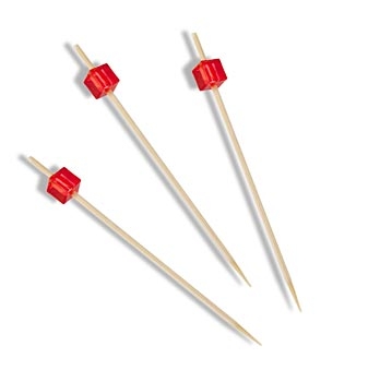 Holz-Spieße - mit transparentem roten Würfel, 9cm, 100 St