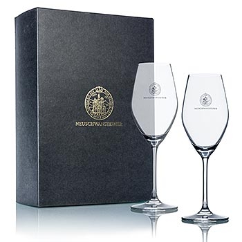 Um Neuschwansteiner Edelmärzen optimal genießen zu können, sollte man es aus dem richtigen Glas genießen. Deshalb bieten wir ein Neuschwansteiner Gläserset (2 Gläser) in attraktiver Geschenkverpackung, ab sofort neu im Sortiment an. Natürlich steht auch hier Qualität und elegantes Design an erster Stelle. Die ansprechende, geschmackvolle Geschenkebox beinhaltet 2 Edelmärzengläser der Marke Schott Zwiesel mit Golddruck ( 12% Echtgold), eingebettet in schwarzem Seidenpapier. Das perfekte Geschenk in Verbindung mit einer Flasche Neuschwansteiner Artikel 40481. Genussinhalt (Liter): 0,15 Liter Material: Kristallglas Farbe: Transparent Set-Größe (Teile): 2-teilig Durchmesser (cm): 7,00 cm Marke: Schott Zwiesel Höhe (cm): 24,00 cm