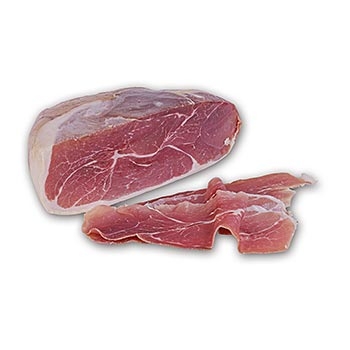 DER neue Steiermark-Schinken mit Vulcano-Qualitätsphilosophie Ein sinnliches Erlebnis und eine Erfahrung von inspirierender Tiefe, die alles verändert. Das Reifearoma ist von milder Feinheit geprägt, die Grundnote mit steirischen Schweinen entschieden und beständig. Jede Scheibe, hauchdünn geschnitten, trägt ein wunderbares Geheimnis in sich, die Quintessenz reinsten Geschmacks, verdichtet zum steirischen Genuss. • 18 Monate luftgetrocknet ohne Rauch, in sanfter südossteirischer Luft • sehr guter Zuschnitt, kurzes Bein • freundlich für die Handhabung an der Bedienungstheke – auch für wenig geübte Kräfte • ganzer Schinken ohne Schwarte, leicht zu schneiden, keine Verluste, wenig Abschnitte • Stückgewicht ca 6–7 kg, zwei halbe Stücke vakuumiert, einzeln im Netz verpackt • wertvolle, hochwertige Fütterung, garantiert ohne Einsatz von Gentechnik • frei von Aromastoff en, Farbstoff en, Gluten und Geschmacksverstärkern • Schweine geboren, gemästet und geschlachtet in der Steiermark • frei von jeglichen Allergenen