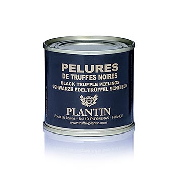 Schalen vom Winter-Edeltrüffel in Salz und Trüffelsaft eingekocht. Vollkonserve. Sie können zum Aromatisieren von Saucen angewendet werden; dabei sollte man sie vorher in etwas Olivenöl andünsten.